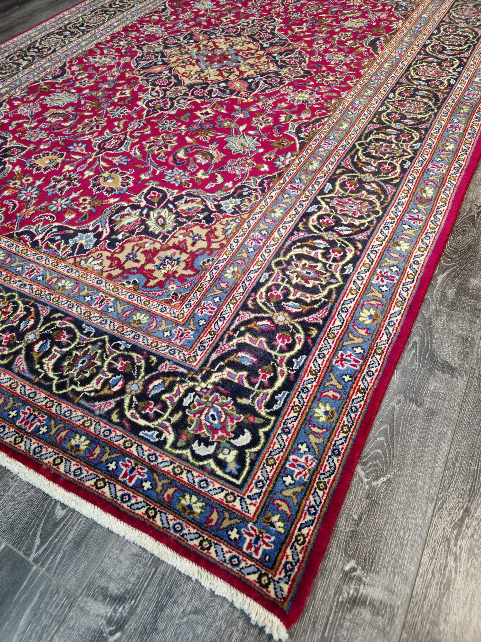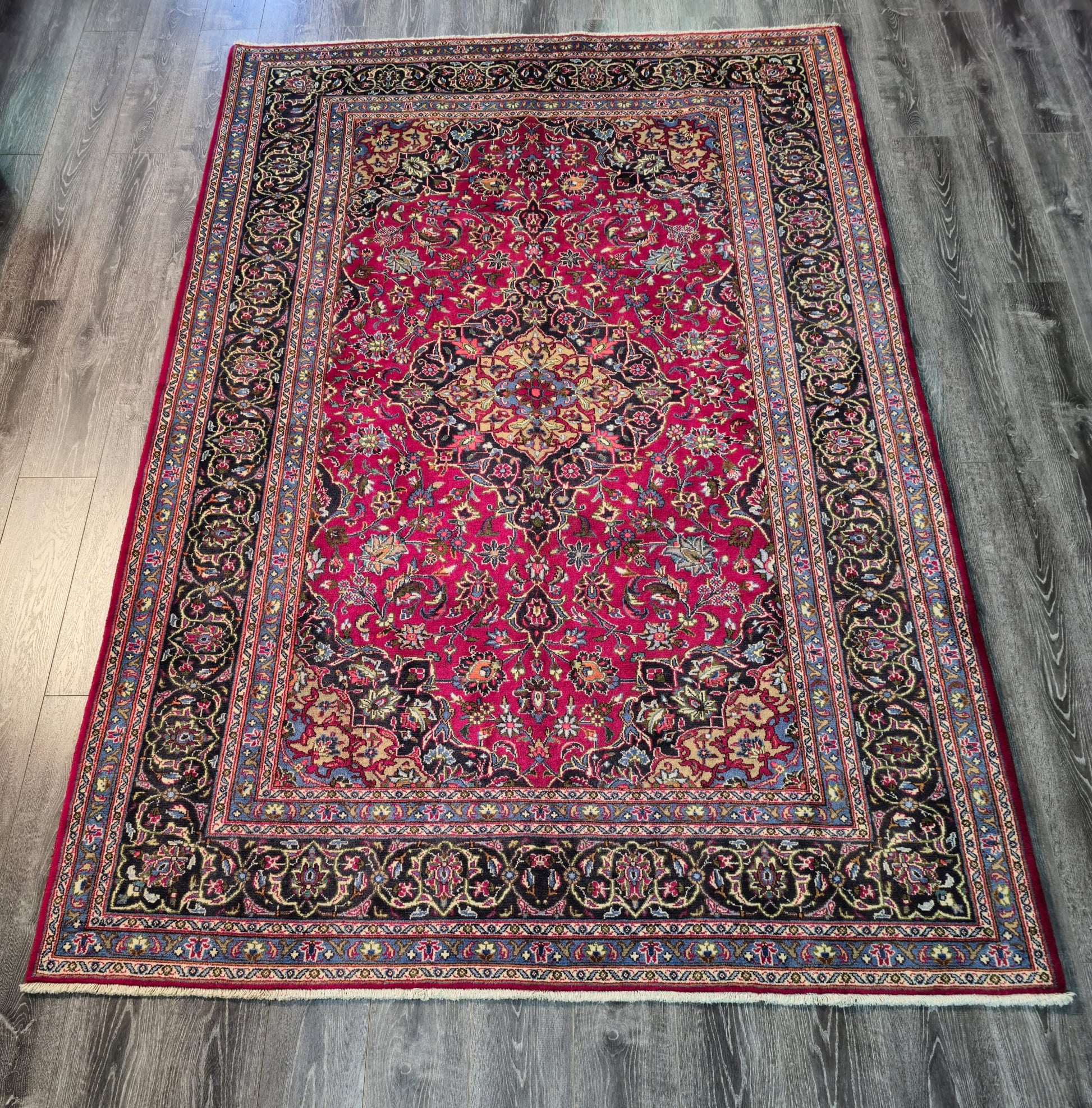 Add a touch of warmth and elegance to your space with this stunning handmade rug.