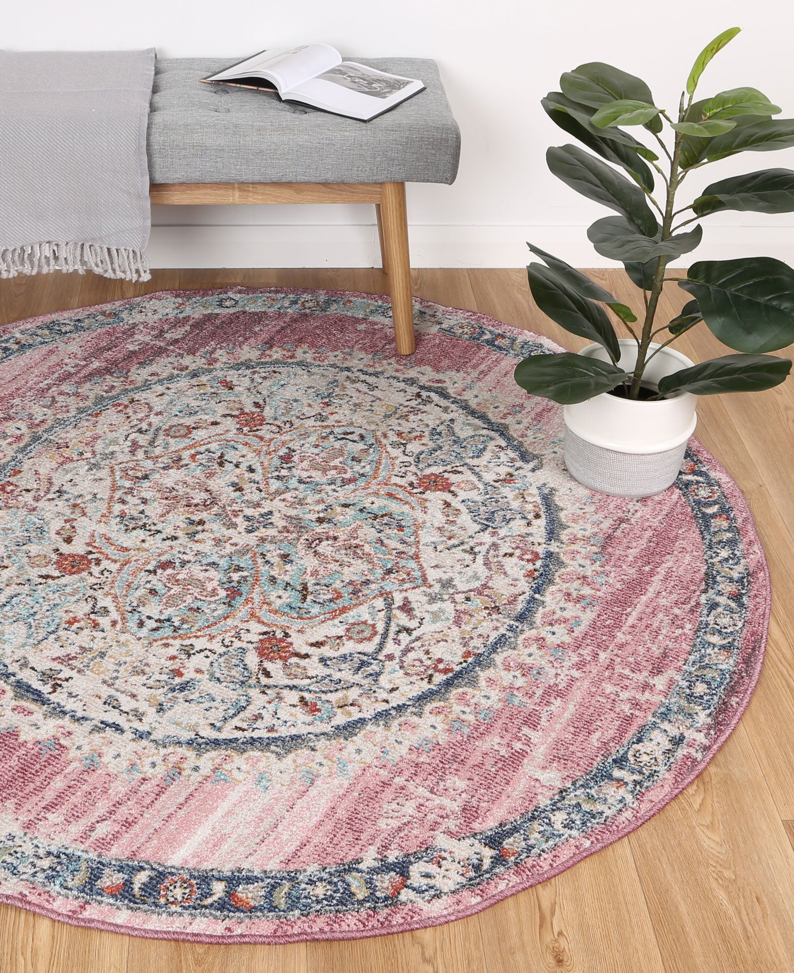 Salsa Hollow Medalion Transitional Blush Round Rug
